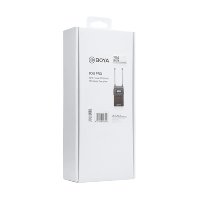 The BOYA RX8 Pro UHF Wireless Receiver is a dual-channel UHF belt-pack audio receiver, which can work with TX8 Pro, BY-WHM8 Pro or BY-WLXR8 Pro.