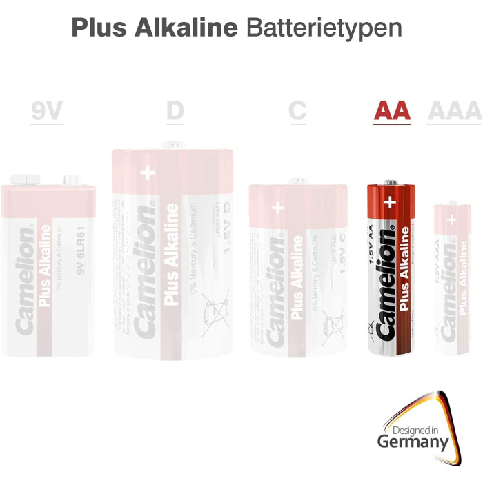 Camelion Plus alkaline batteries deliver high current to allow consumers to enjoy longer use in remote controls, toys, radios and other diverse devices compared to zinc-carbon batteries. With its long-lasting energy and excellent shelf life, it is ideal for most electronic applications.