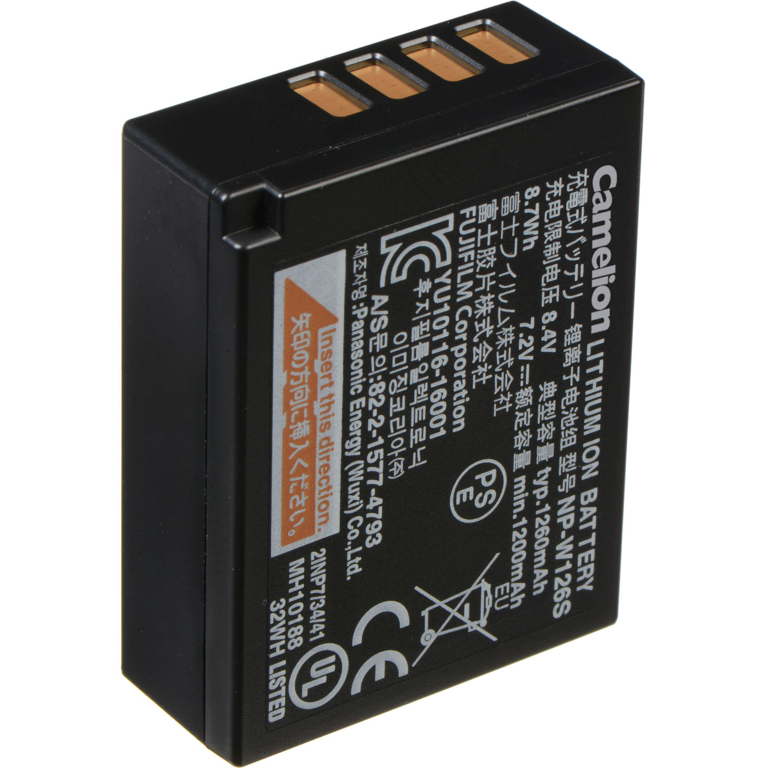 Camelion NP-W126S Overview For using the maximum power of your mirrorless camera, the Camelion NP-W126S Li-Ion Battery Pack has been designed to better manage heat and ensure lightning fast camera performance. This battery is also compatible with older cameras that use the NP-W126 battery pack, but users will not see any performance advantages in those bodies. Compatibility X-H1 X-Pro2 X-Pro1 X-Pro3 X-T3 X-T2 X-T1 X-T30 X-T20 X-T10 X-T100 X-E3 X-E2S X-E2 X-E1 X-M1 X-A5 X-A3 X-A2 X-A1 X-A10 X100F FinePix HS50EXR FinePix HS33EXR FinePix HS30EXR