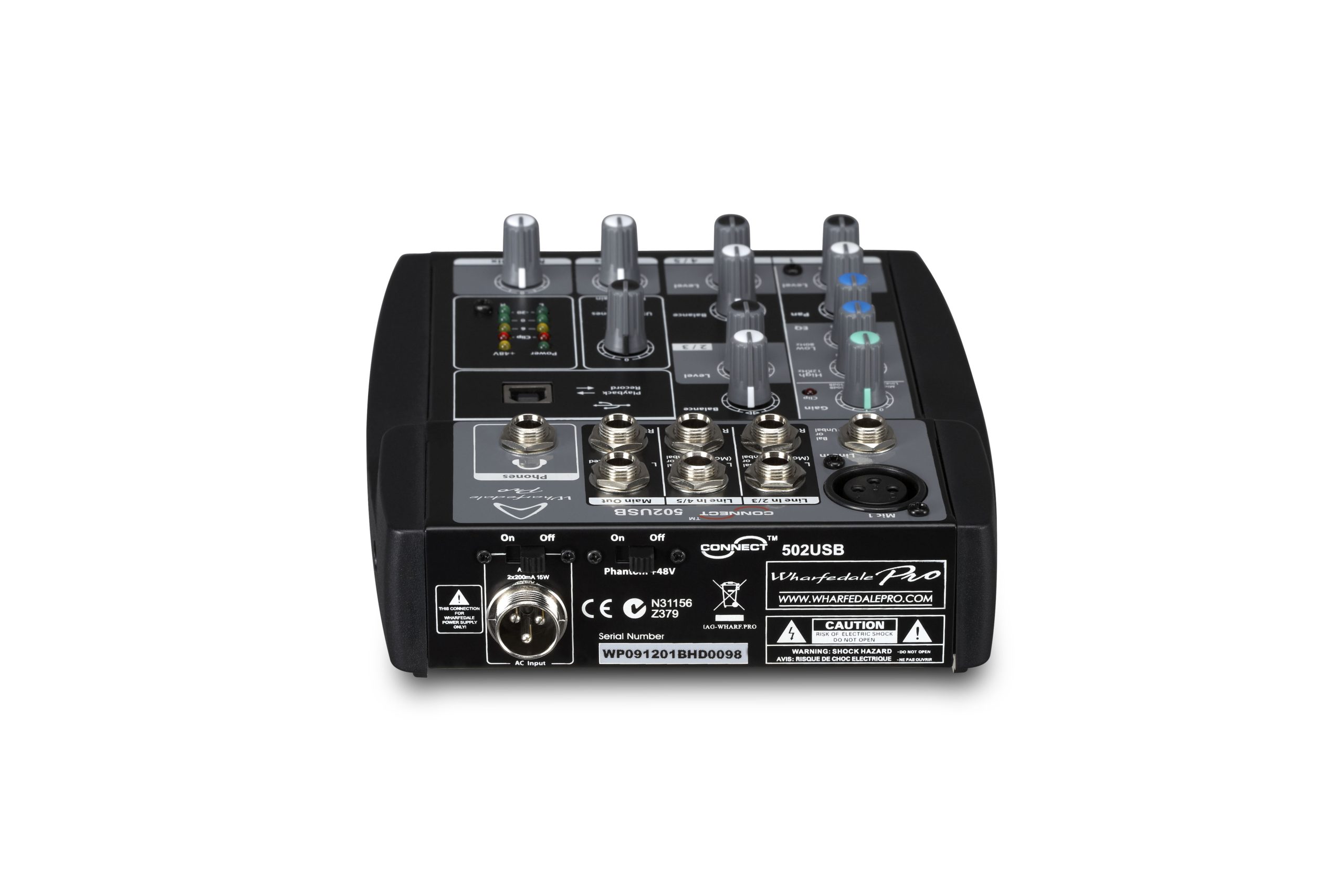 The Connect 502USB features a studio grade XLR / Jack input with phantom power and two additional stereo channels. This makes the mixing desk particularly well suited to singer-songwriter musicians who maybe using their vocals combined with a guitar and backing tracks.
