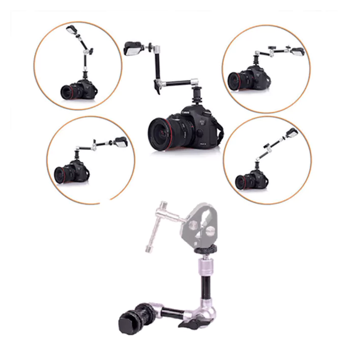 Superior quality, precise and durable design. Magic Arm Articulating Stand 11″/ 28cm Stainless steel screws Flexible, versatile magic arm Dual Ball Heads Two 1/4″-20 screws Maximum mounting flexibility Single point locking mechanism Fits any standard Hot Shoe mount.