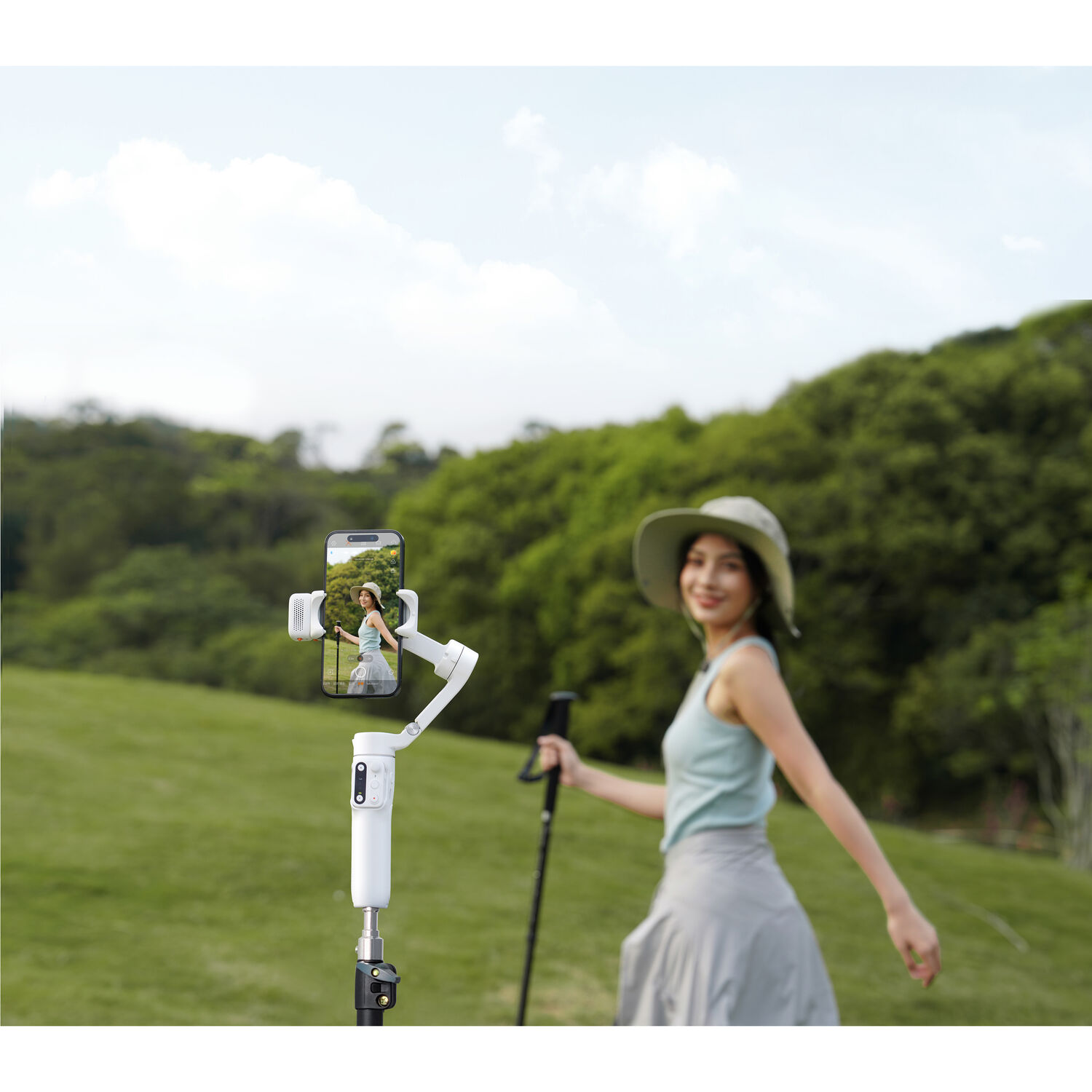 Integrated iSteady 8.0 stabilization technology and 3-axis anti-shake smooth any jarring motions that might impact your footage. The magnetic AI tracker unit secures to the top of the gimbal’s smartphone clamp and works with your phone’s native camera. Face and body movements are precisely tracked thanks to the module’s 16.4′ recognition distance. Gesture control can start/stop filming and switch between portrait and landscape shooting orientations.