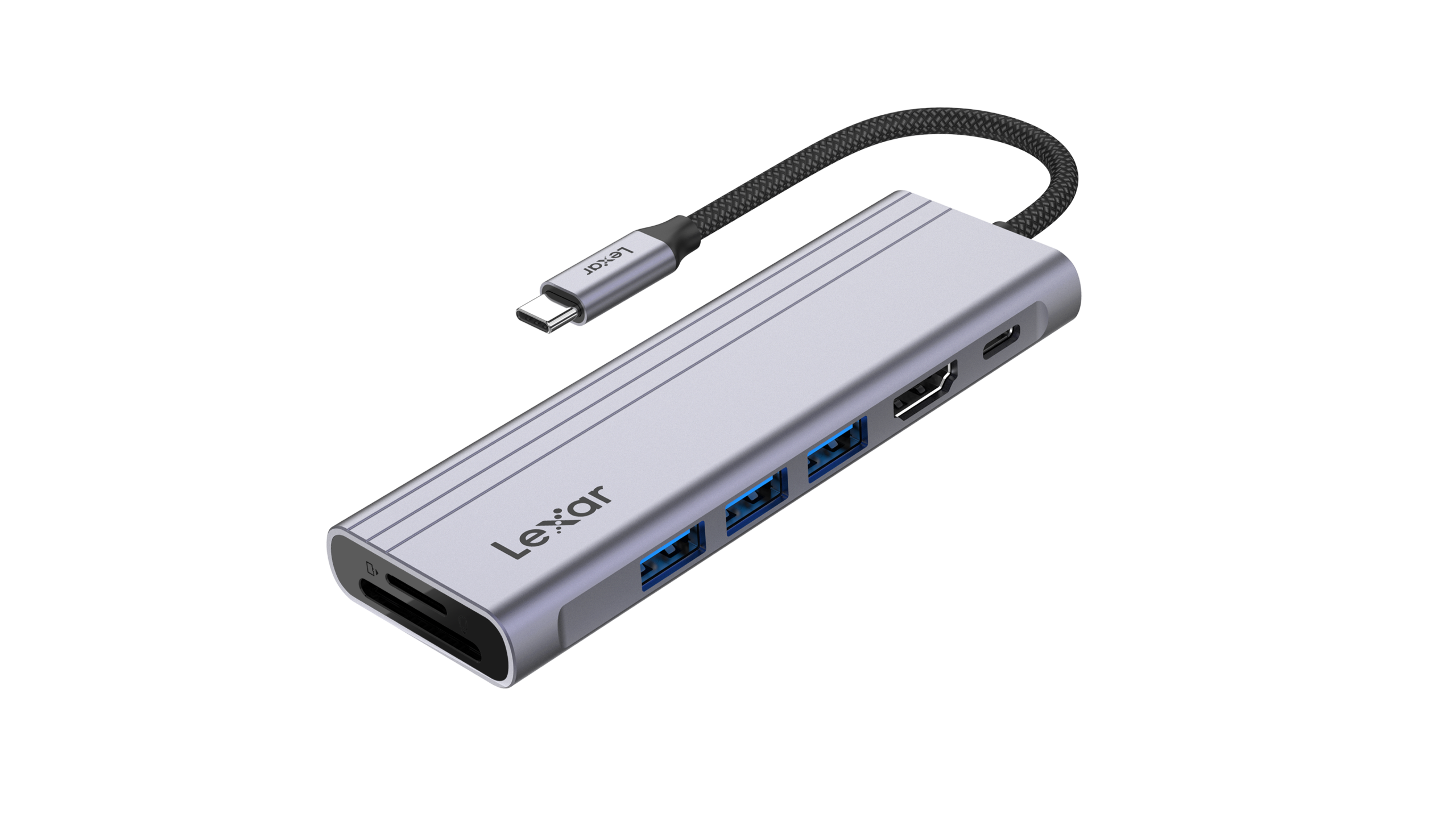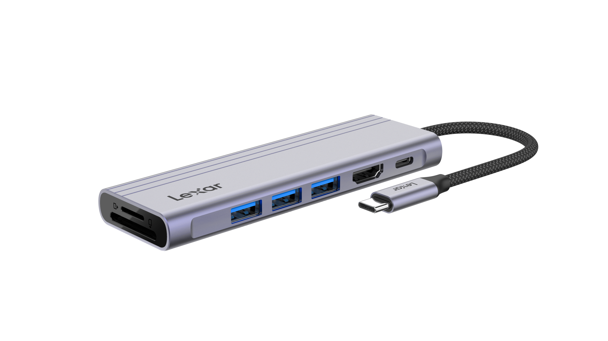 The Lexar H31 7-in-1 USB-C Hub connects your possibilities with a portable workstation for work, home and travel. Featuring three USB-A high-speed ports, one USB-C power delivery charging port, one 4K@60Hz HDMI port, and SD/microSDTM card slots, you can connect anywhere, anytime.