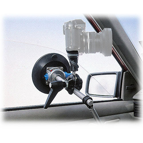 The Manfrotto 241V Suction Grip with Camera Support features a camera support and an adjustable pole for additional support and stability. It is a handy grip that adheres to any flat non-porous surface via its large 5.8″ (15cm) suction cup. Clamped onto the shaft connected to the suction cup is a versatile ball-joint socket which rotates within a half hemisphere, and which comes topped with a 1/4″-20 screw. The head will also accept accessories that use a 5/8″ stud connection.