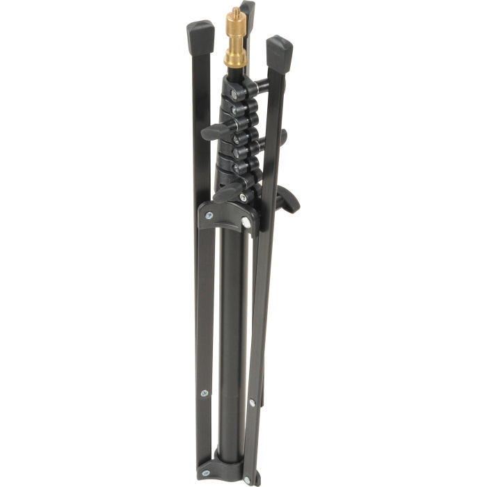 What makes the 5-section stand special are its legs that fold upward to the center column, making the stand’s length just 19.3″ while weighing just 2 lb. For a small stand, the 5001B Nano has a wide, stable footprint of 39.4″. In fact, you can spread the legs wide enough to position the stand flat on the floor. The stand breaks down just as fast as it sets up, while its legs have rubber tips to avoid scratching.