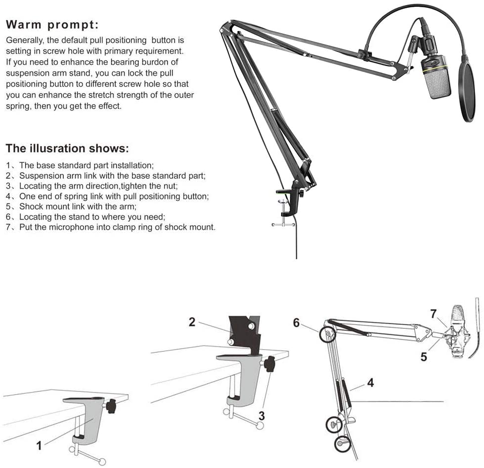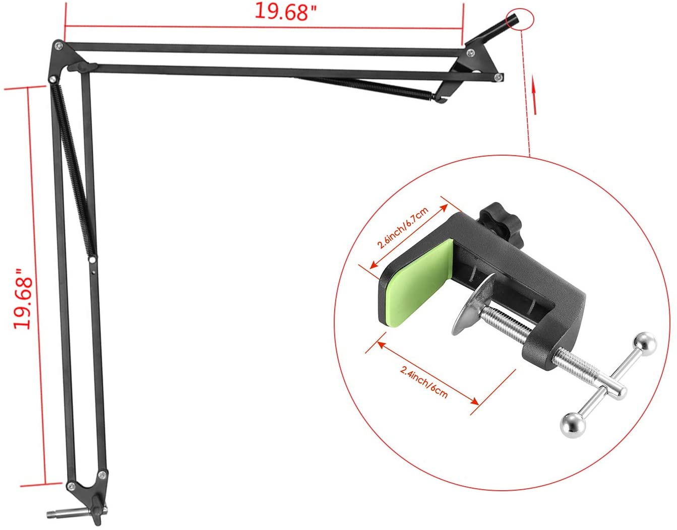 NB-39 Adjustable 43.3″/110cm Studio Recording Microphone Suspension Boom Scissor Arm Stand with Microphone Clip & Table Mounting Clamp