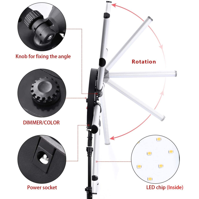 - Dimmable 12 tubes 672 Leds SMD light with a wide dimming range of 1% -100%.