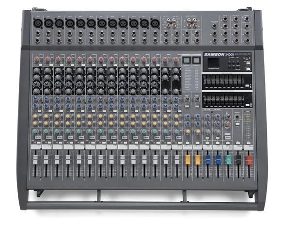 - 20-channel (12 mono, 4 stereo) powered mixer