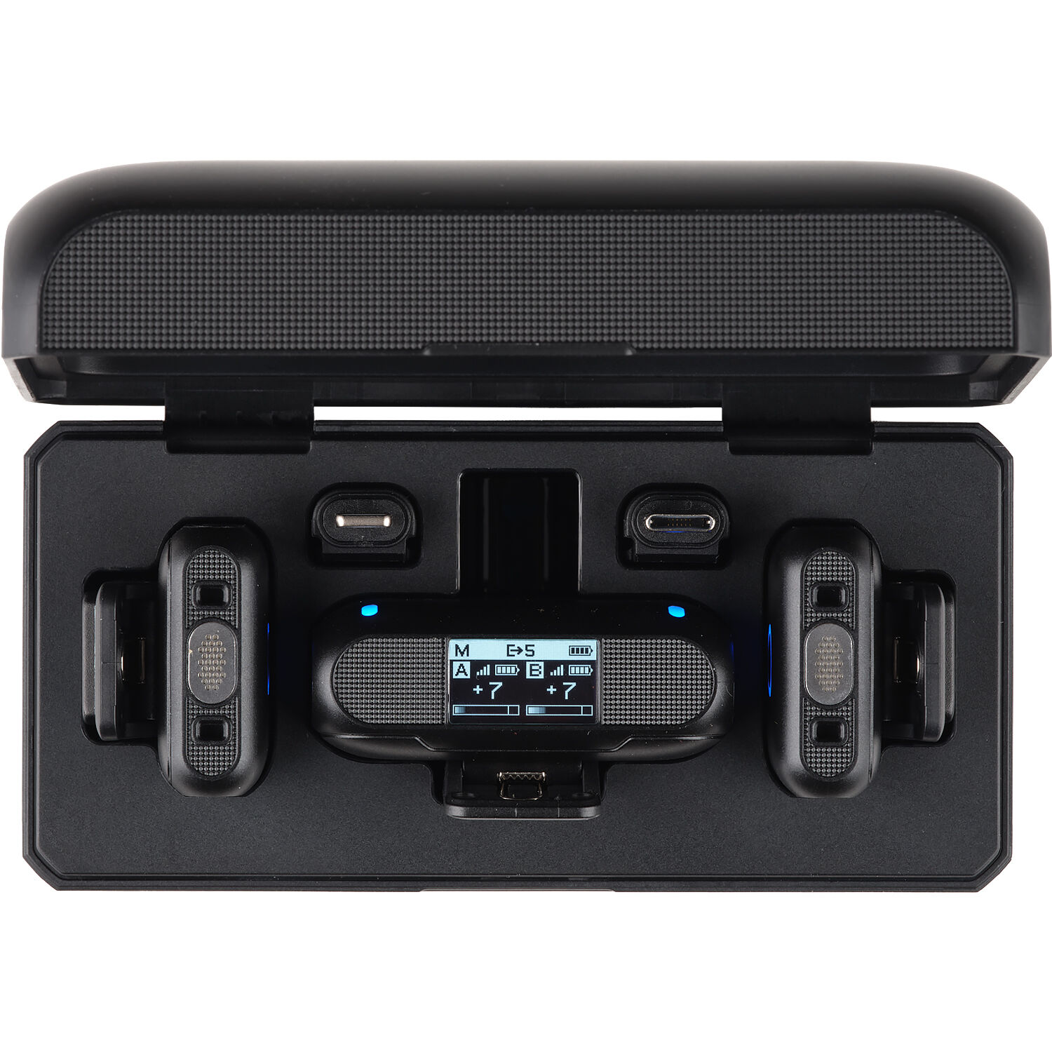 - The transmitters and receiver can be powered while in use or charged outside of the case using USB battery packs or a power supply for even more powering versatility.