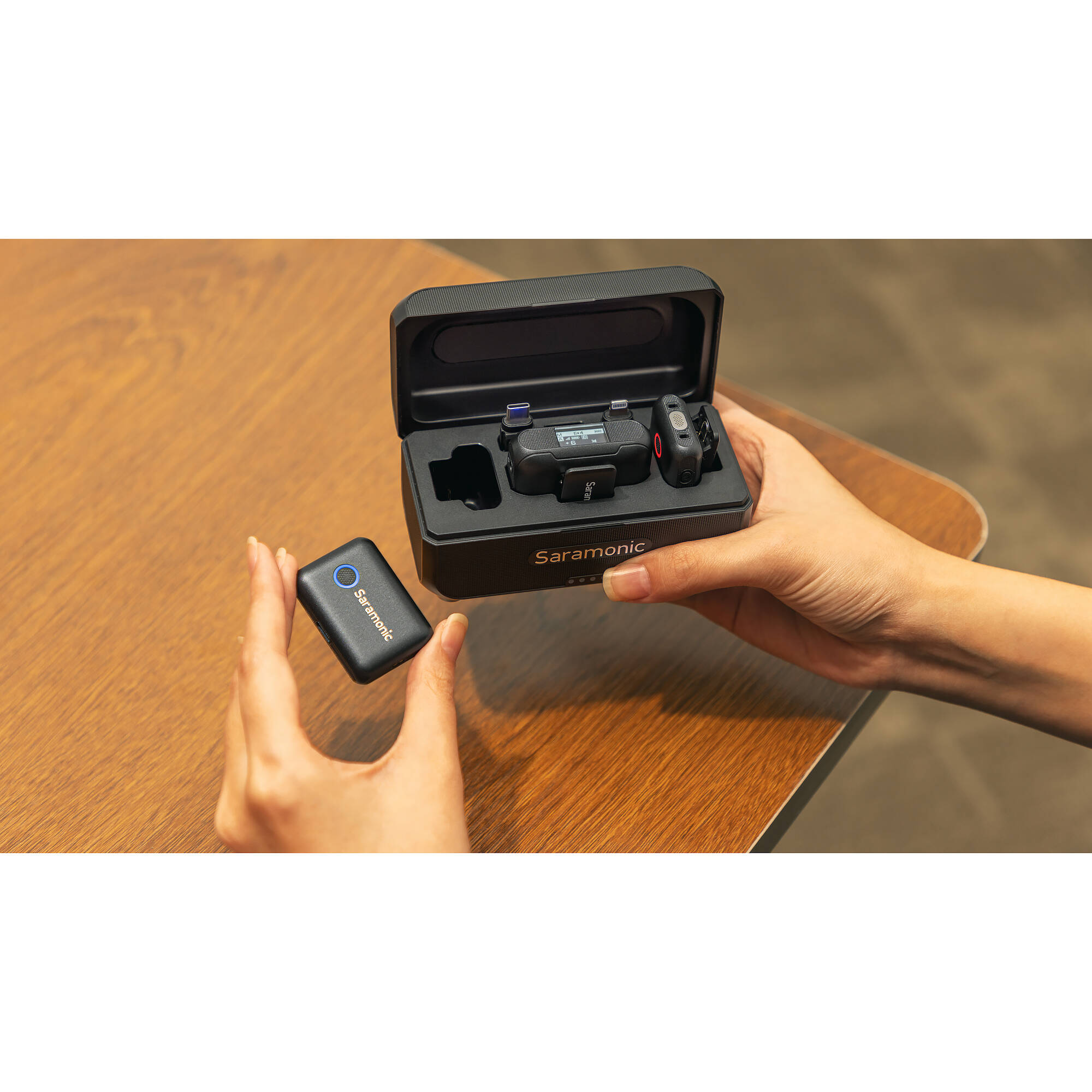 - The two B2+ transmitters are super-compact and lightweight, allowing you to easily clip them to a shirt’s collar or discretely mount them anywhere using the included magnetic mounts. They are also versatile, allowing you to capture great audio handheld or placed on a table or podium.