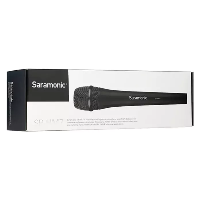Saramonic SR-HM7 is a unidirectional dynamic microphone with cardioid pick-up pattern, specifically designed for interview and presentation used, the easy-to-handle product structure minimizes wind and handing noise, making it ideal for ENG & interview applications.