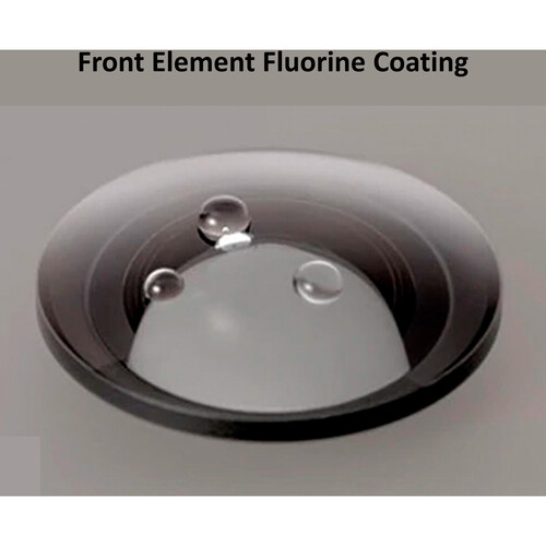 - Fluorine-coated front element resists dust, moisture, and fingerprints and is easy to clean.