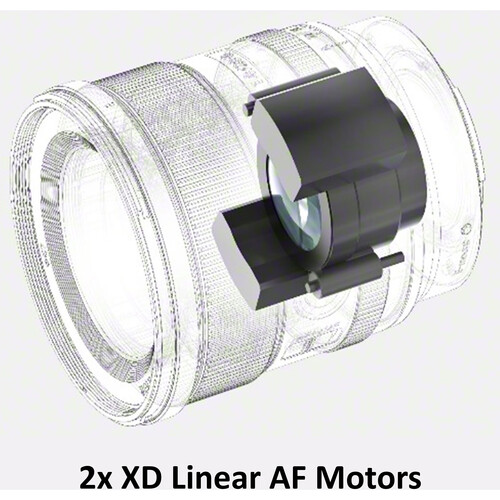 Two XD Linear Motors provide quick, quiet, and precise autofocus and subject tracking performance. This design also contributes to more natural, intuitive Linear Response manual focus control and an AF/MF switch is located on the lens barrel for tactile control over this setting.