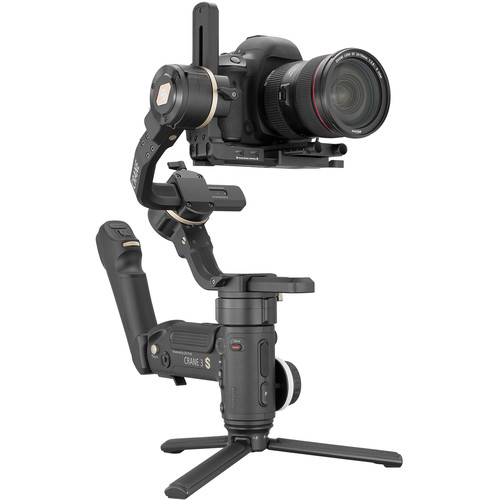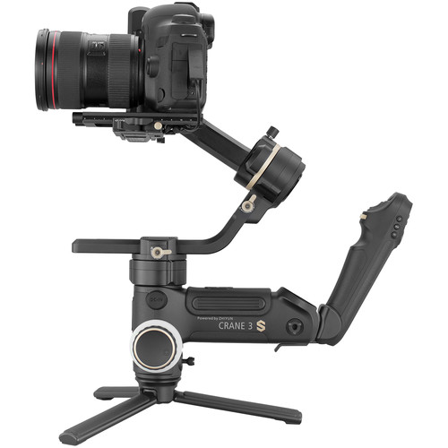 The CRANE 3S Handheld Stabilizer from Zhiyun-Tech is a powerful redesign of previous Zhiyun gimbals with the addition of detachable handle options, more powerful motors with a large 14.3 lb payload, an updated axis-locking system, external power input, and the ViaTouch 2.0 remote control system. The 55° angled roll axis allows you to fit your camera without blocking the view, and it is also modular so you can add an included extension arm to fit larger cameras.